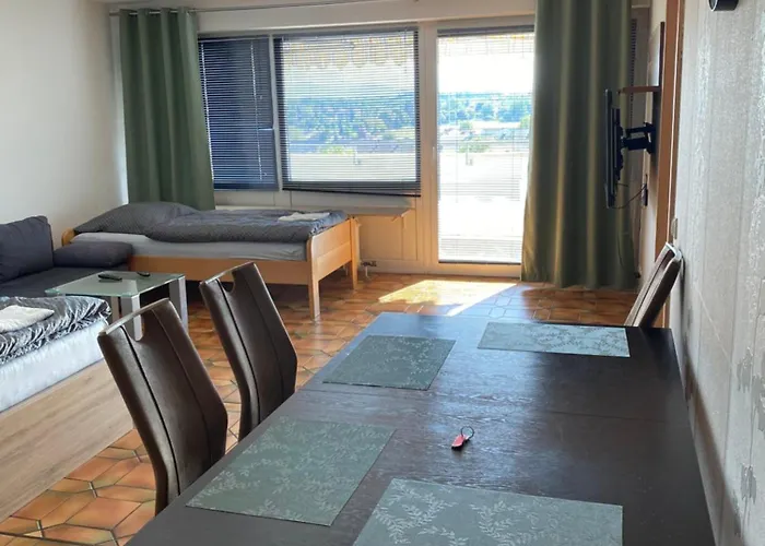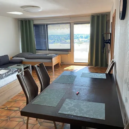 Az Idyllische Aussicht Apartman apartman kínál egy teljesen felszerelt konyhát, valamint szobákat erkéllyel, íróasztallal és kávé/teafőzővel. A Burg- und Festungsruine Hochburg 3 km-re van az ingatlantól, míg a Stadttor 2 km-re helyezkedik el.